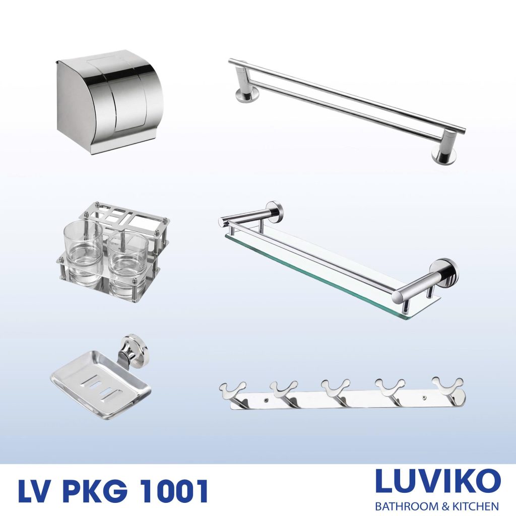 Bộ phụ kiện gương LUVIKO LV 1001 PKG bao gồm đầy đủ các vật dụng cần thiết cho sinh hoạt hằng ngày trong phòng tắm: