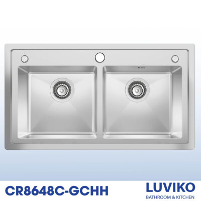 Chậu rửa bát handmade 2 hố cân giật cấp vòi gắn chậu CR8648C-GCHH có công nghệ đúc nguyên khối giúp sản phẩm có độ đồng đều về chất lượng, bề mặt chậu có khả năng chống xước tốt và chống bám dính hiệu quả nhờ công nghệ đánh bóng và vật liệu cao cấp. Bên cạnh đó, LUVIKO còn áp dụng công nghệ chống ồn và chống thấm giúp mang lại sự thoải mái cho người sử dụng.