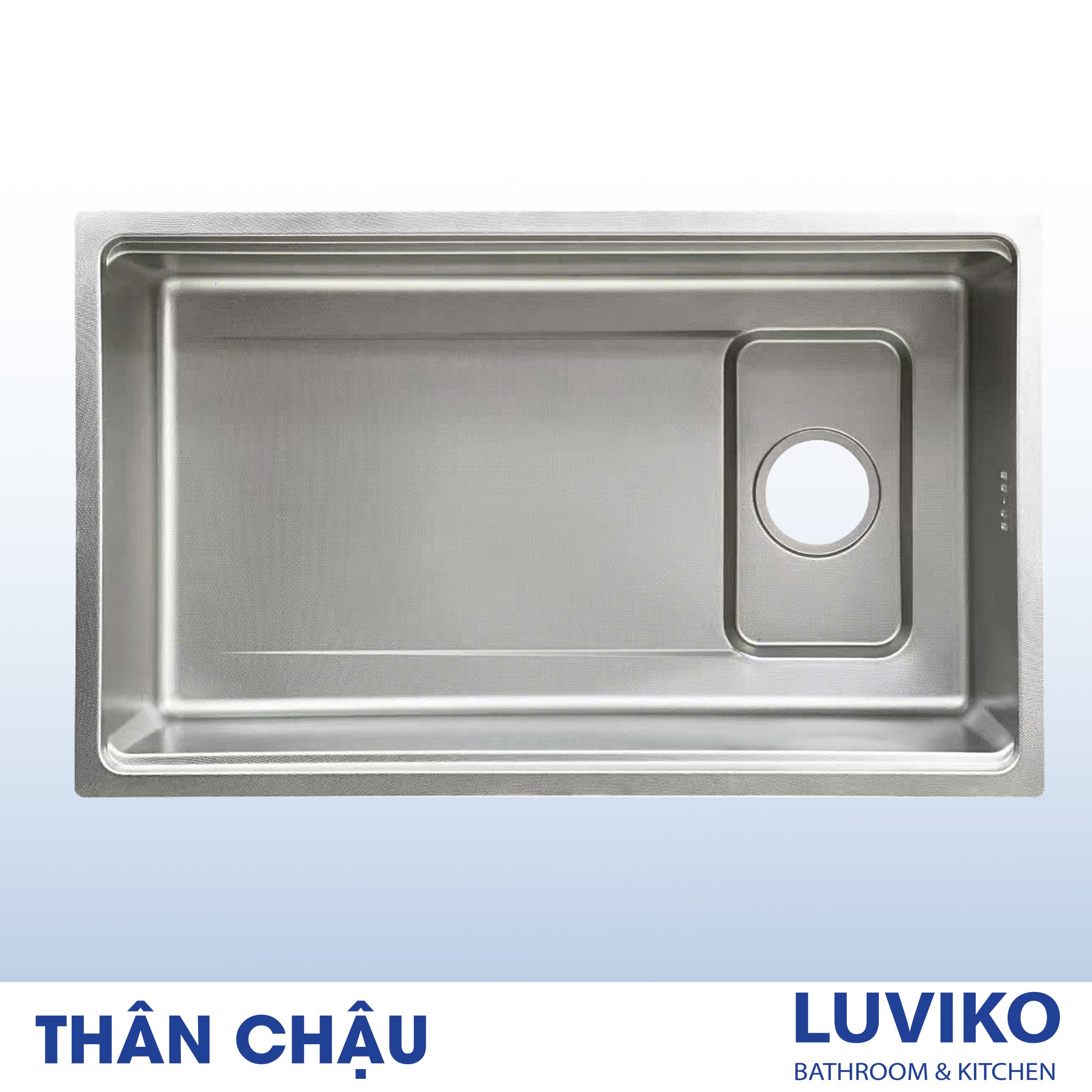 Thiết kế chậu âm bàn giật cấp, thiết kế thông minh, ngăn chặn nước đóng cặn, dễ dàng vệ sinh. Chậu rửa bát LUVIKO trở thành lựa chọn hàng đầu cho những gia đình mong muốn sự tiện nghi và thẩm mỹ. Chậu rửa bát LUVIKO sở hữu thiết kế vuông vắn, đường nét sắc sảo mang phong cách châu Âu. Kích thước được tính toán kỹ lưỡng giúp phù hợp với hầu hết tủ bếp tại Việt Nam, đồng thời tạo cảm giác rộng rãi khi sử dụng.