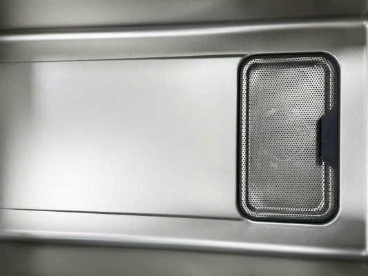 Lớp cao su giảm ồn ở mặt dưới. Lớp chống ngưng tụ hơi nước, hạn chế đọng ẩm gây nấm mốc. Cấu trúc giảm rung khi xả nước mạnh. Nhờ đó, quá trình rửa bát trở nên êm ái, không gây tiếng ồn khó chịu.