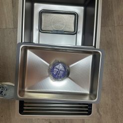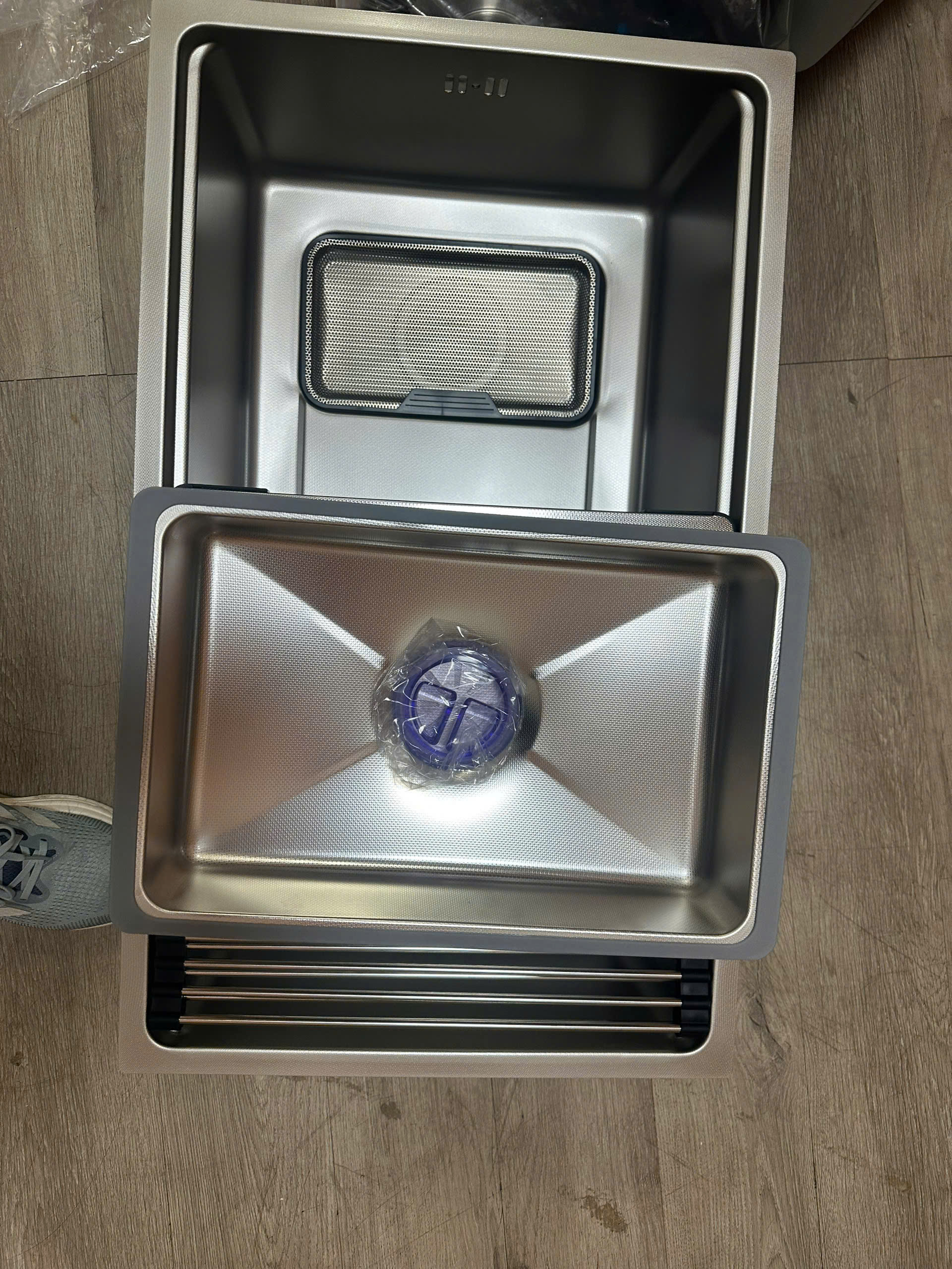 - Đóng gói chuyên nghiệp: 01 chậu lớn, 1 chậu nhỏ đi kèm, 01 bộ xi phông, 01 bộ bát rác, 01 thớt inox, đầy đủ tem mác, thông tin sản phẩm