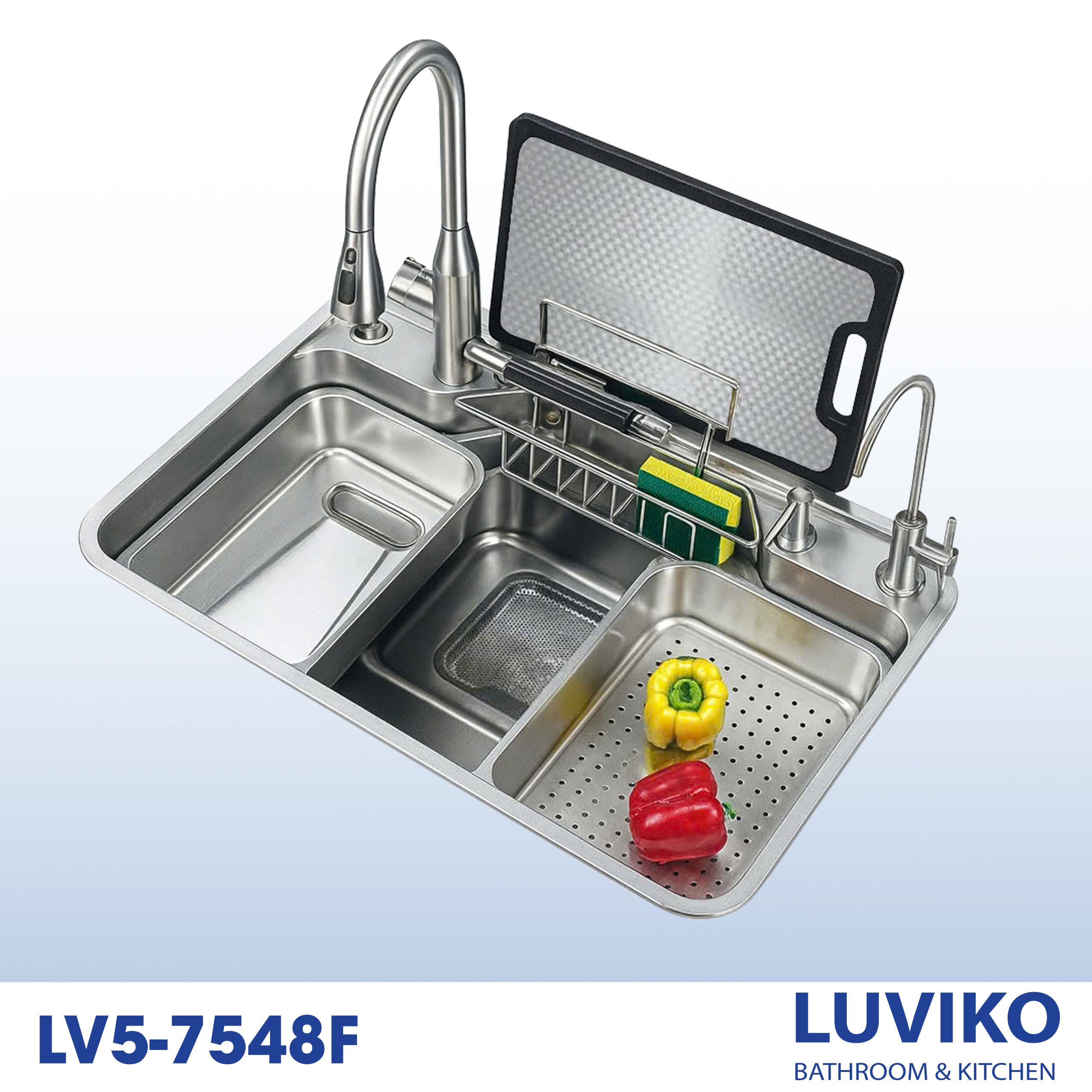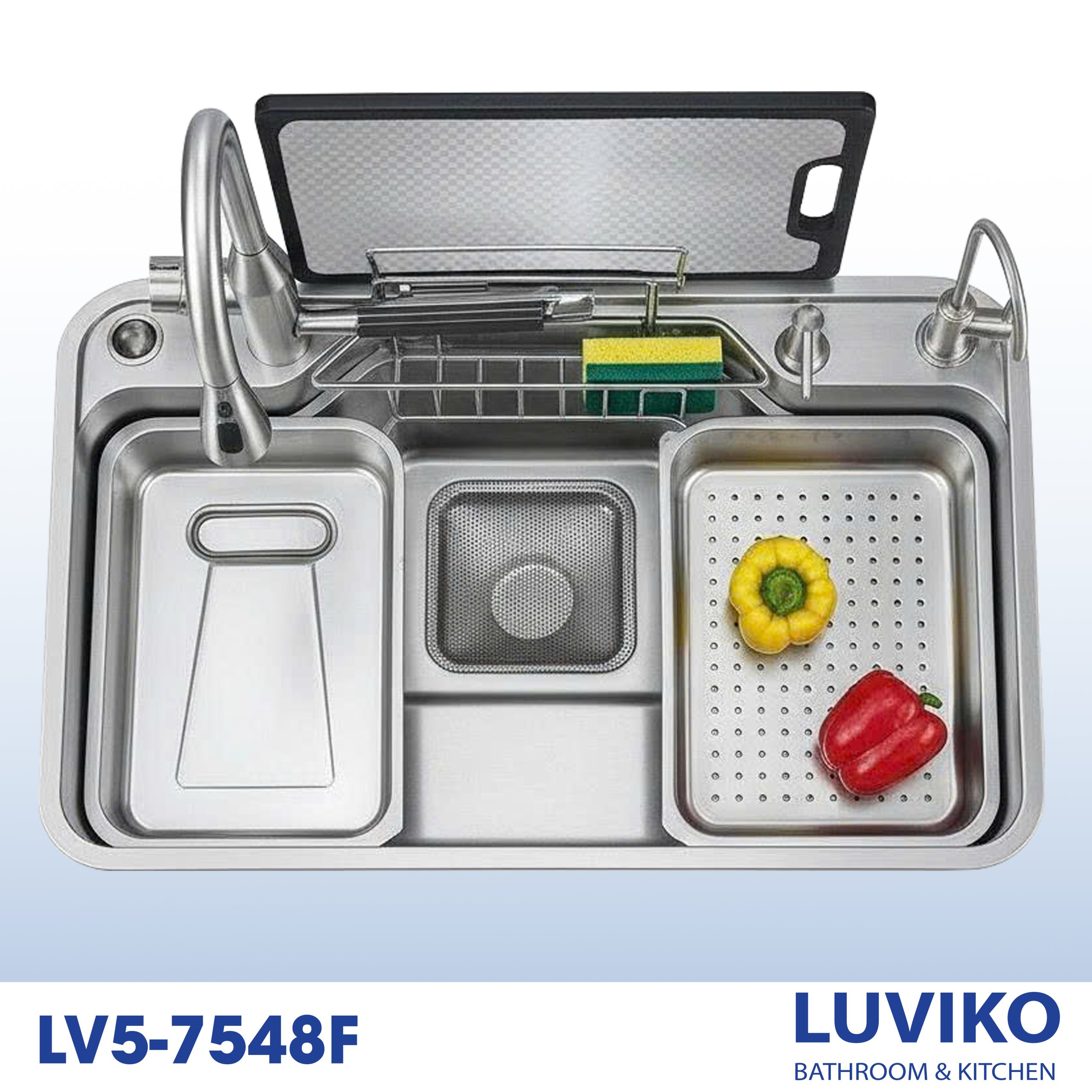 Chậu rửa LUVIKO có thể đi kèm nhiều phụ kiện tiện lợi như: