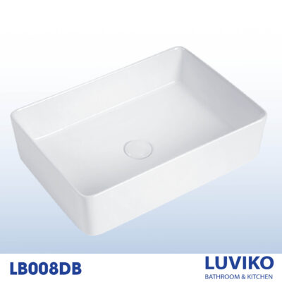 - Chậu lavabo đặt bàn Luviko LB008DB thiết kế hình chữ nhật đặt bàn, với đường viền mỏng tinh tế.