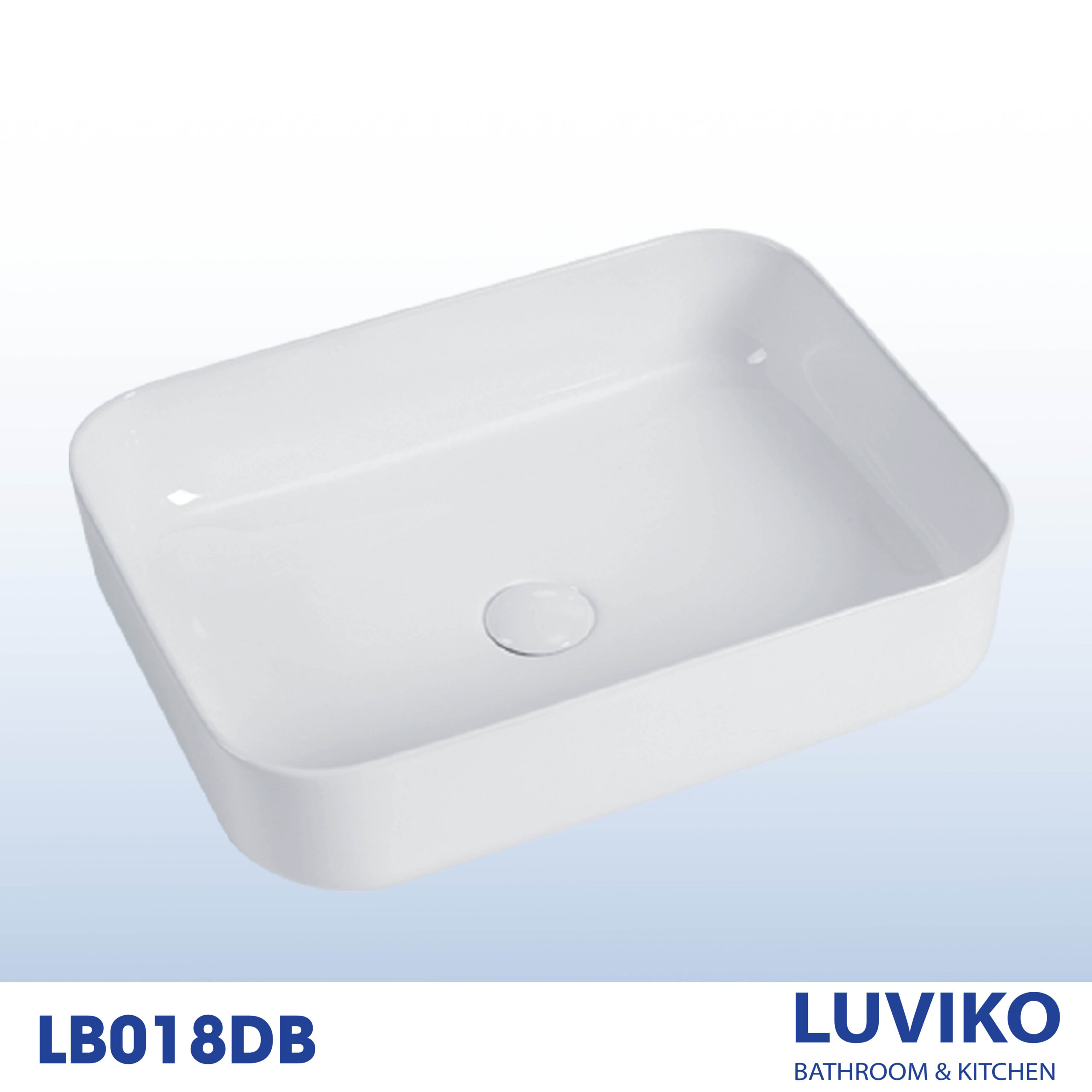 - Chậu lavabo đặt bàn Luviko LB018DB thiết kế chữ nhật bo góc, kết hợp màu sắc trắng sứ với độ sáng bóng vượt trội mang đến không gian đầy sang trọng.