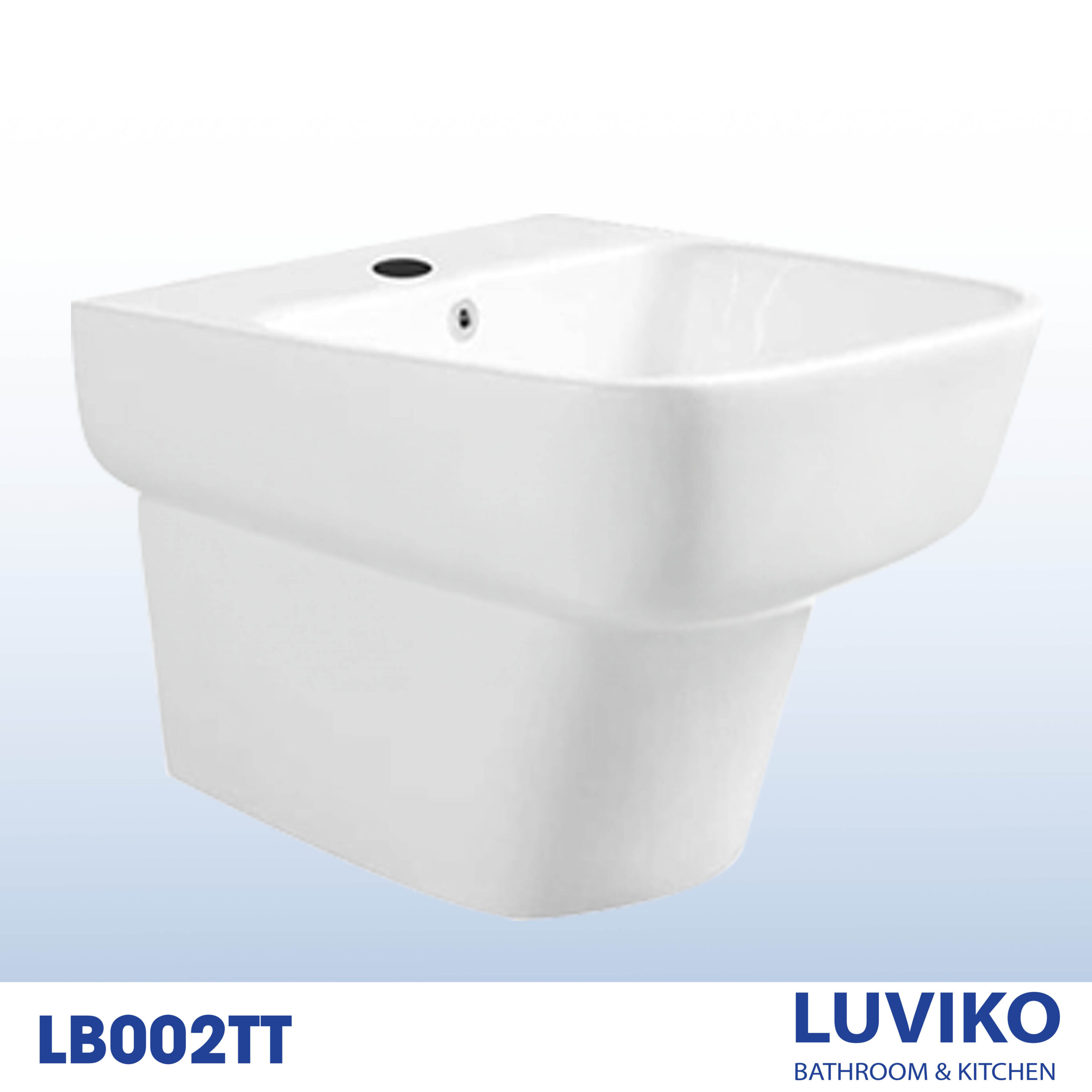 - Chậu lavabo treo tường liền chân Luviko LB002TT thiết kế treo tường, màu sắc trắng sứ sang trọng, mang lại không gian tinh tế, đẳng cấp.