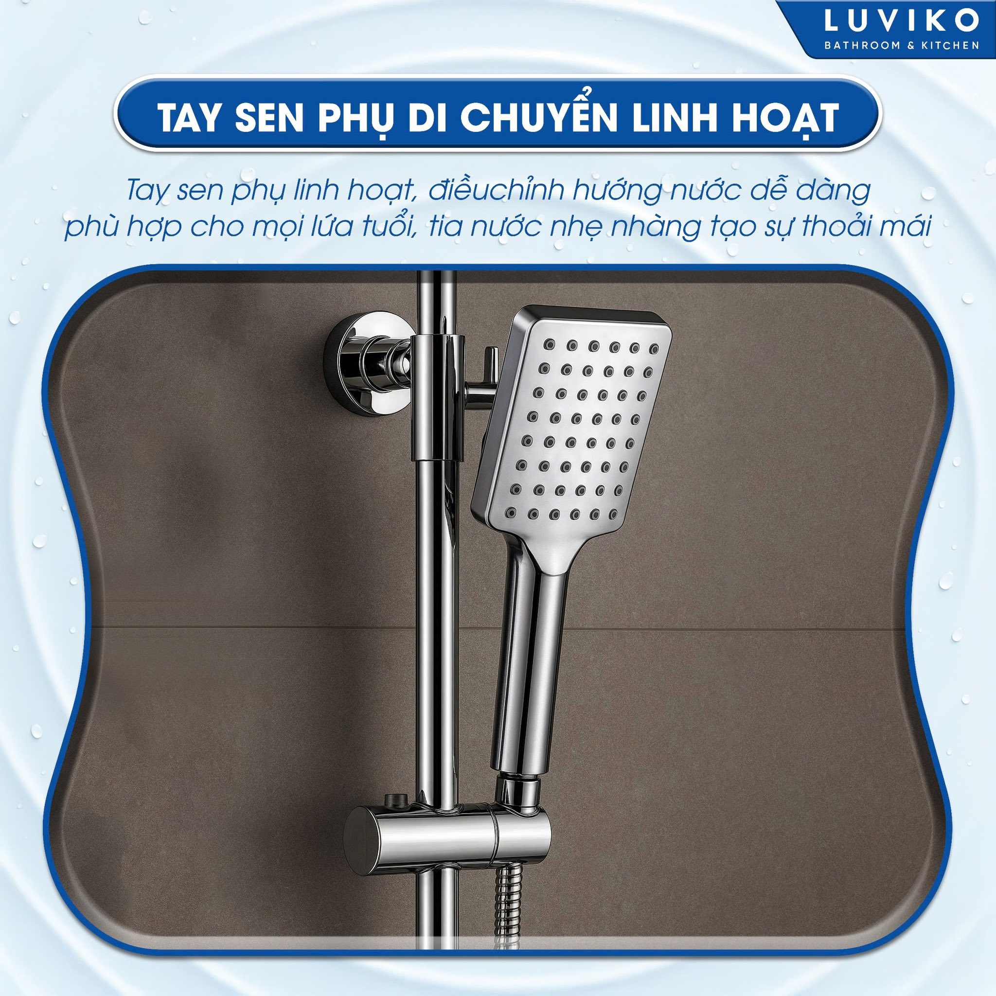 - Đầu vòi sen cây nhiệt độ Luviko SC004ND không những giúp tạo bọt, tiết kiệm nước, giảm tiếng ồn