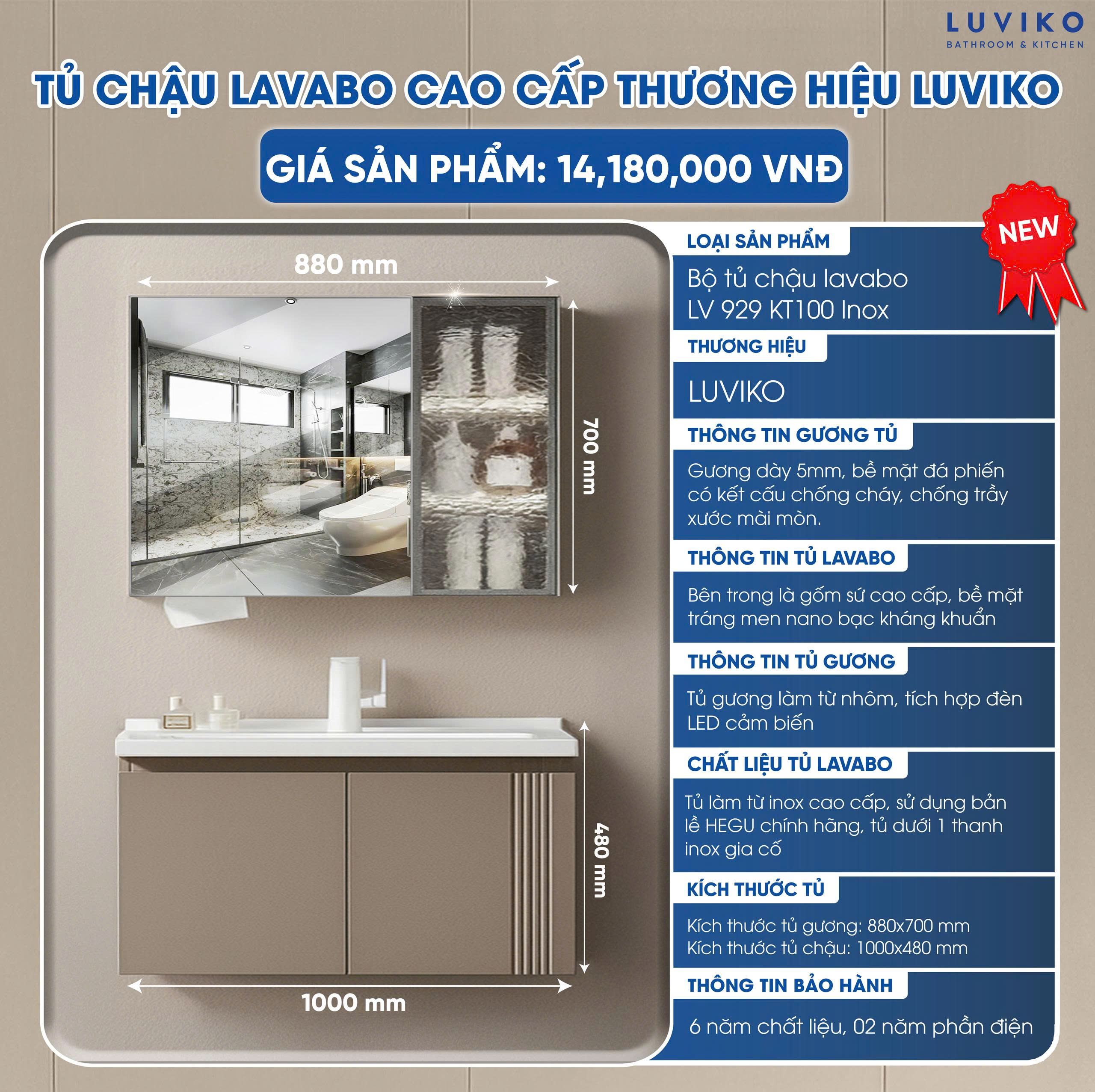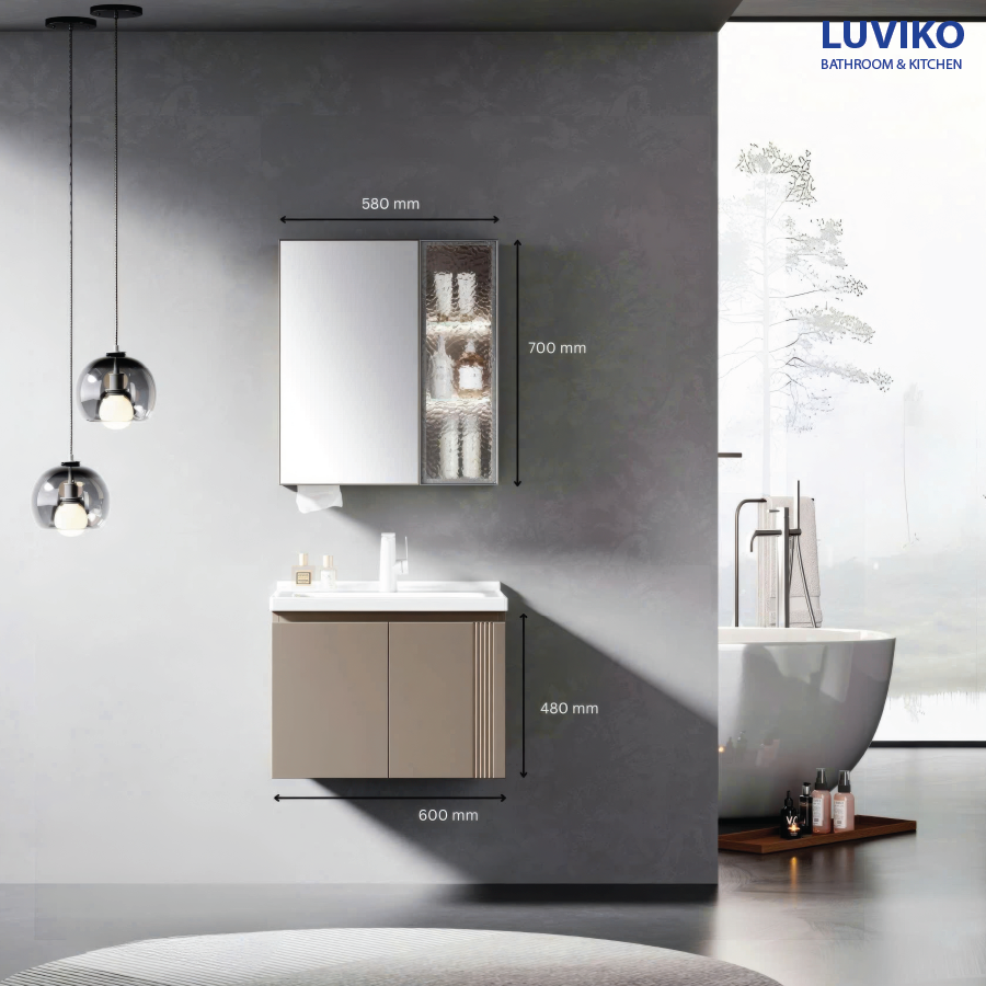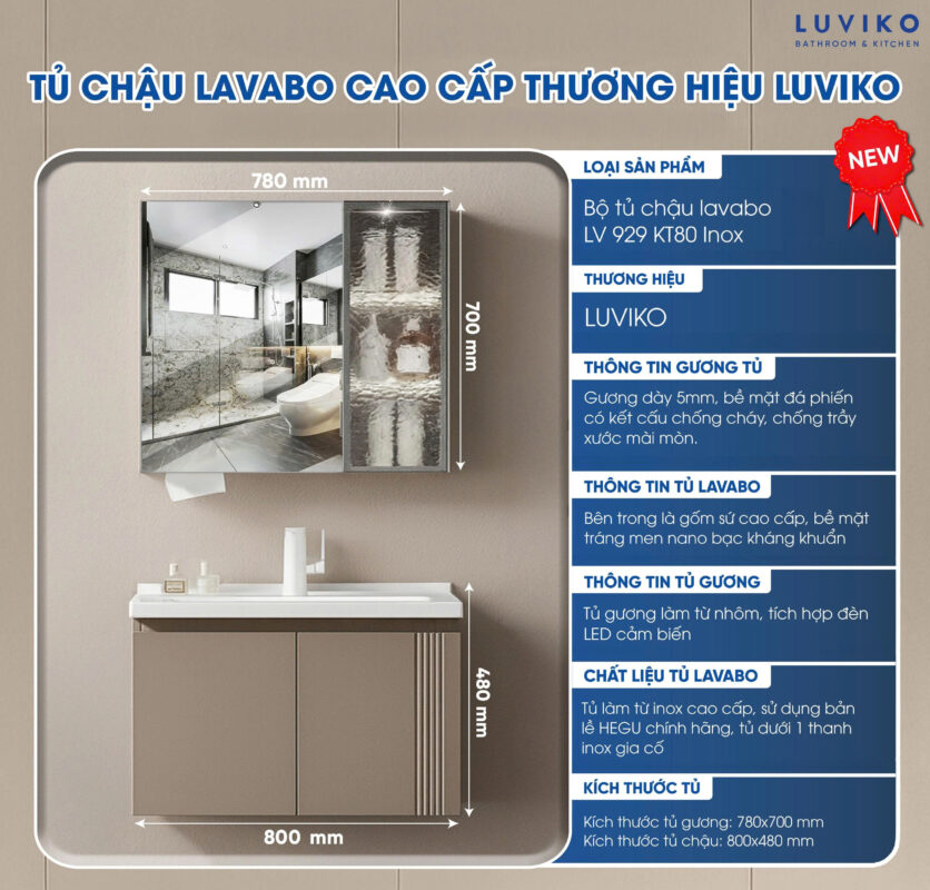 Bộ tủ chậu lavabo gương nhà tắm LUVIKO có 3 kích thước khác nhau: LV 929KT60 – LV 929KT80 – LV 929KT100