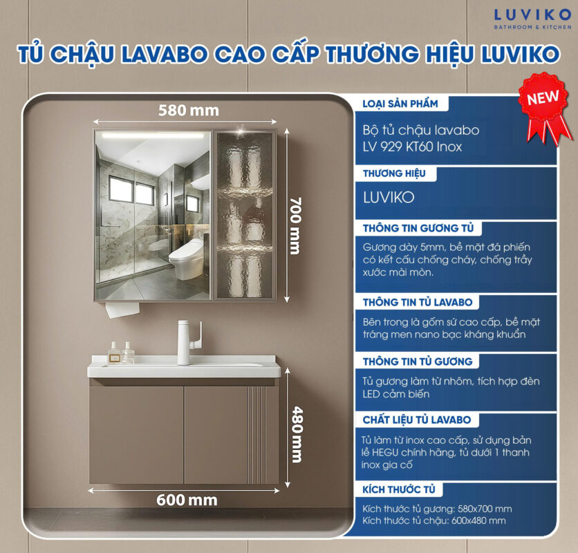 TỦ CHẬU LAVABO LUVIKO LV 929KT60 INOX