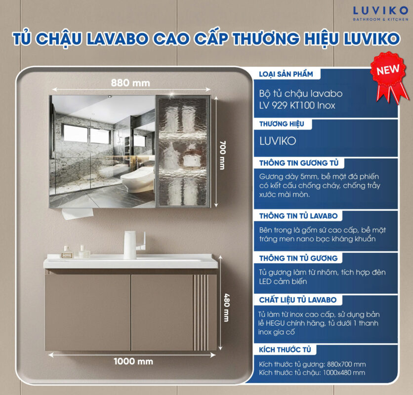 Bộ tủ chậu lavabo gương nhà tắm Luviko LV 929KT60 – LV 929KT80 – LV 929KT100 là dòng tủ lavabo cao cấp mang thiết kế hiện đại, tích hợp nhiều công nghệ thông minh. Sản phẩm thuộc danh mục thiết bị vệ sinh của Luviko không chỉ tối ưu công năng sử dụng mà còn nâng tầm thẩm mỹ cho không gian tủ phòng tắm.