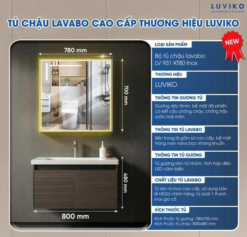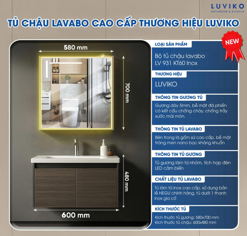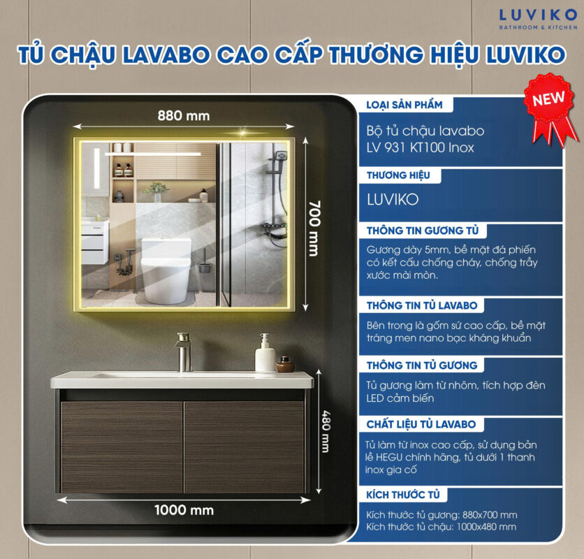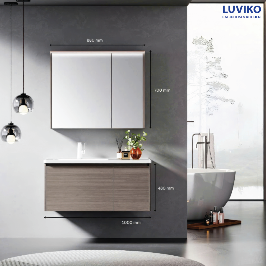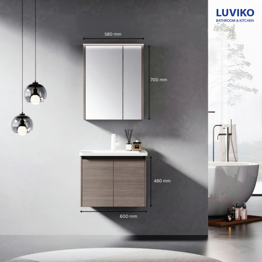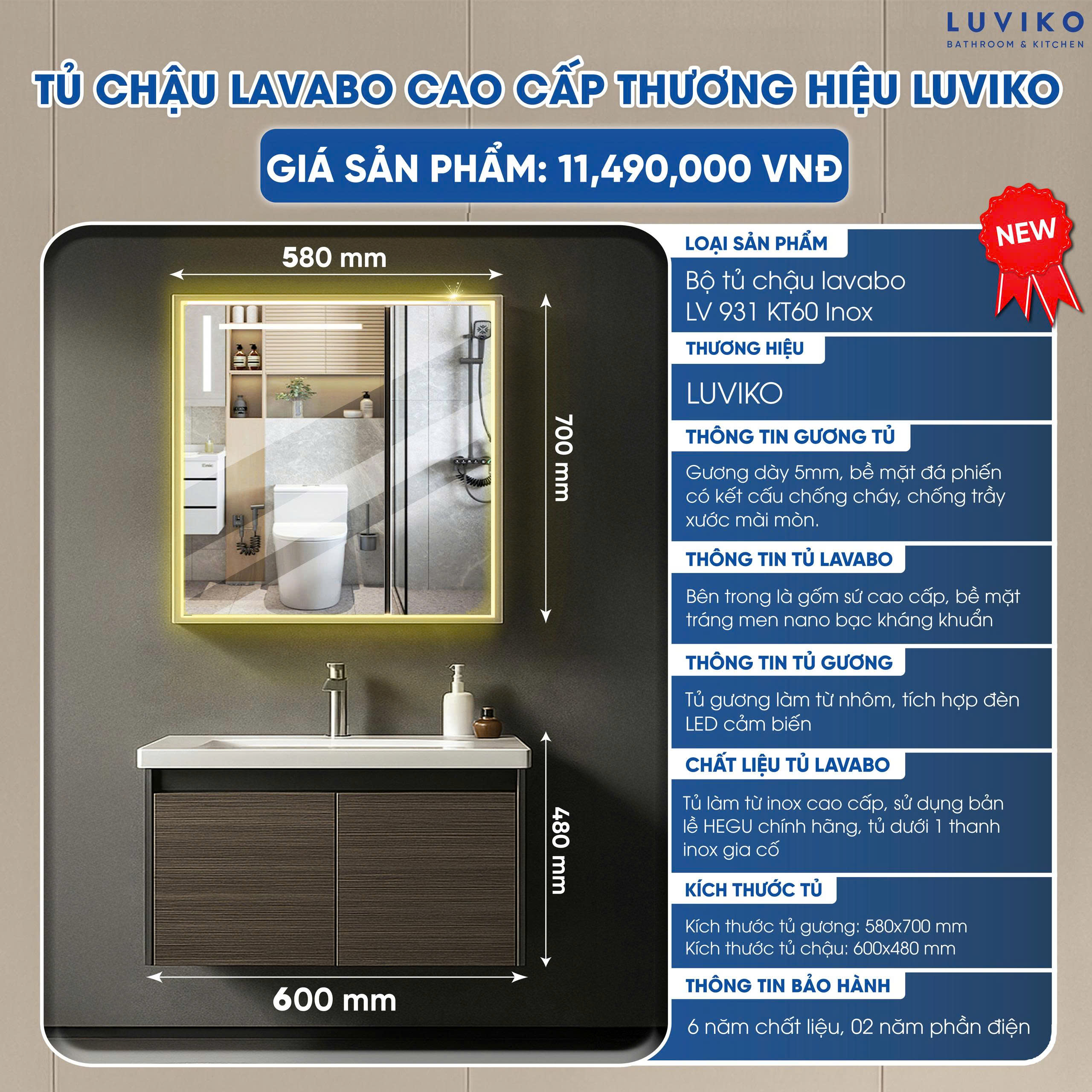 Bộ tủ chậu lavabo gương nhà tắm LUVIKO LV 931KT60 – LV 931KT80 – LV 931KT100