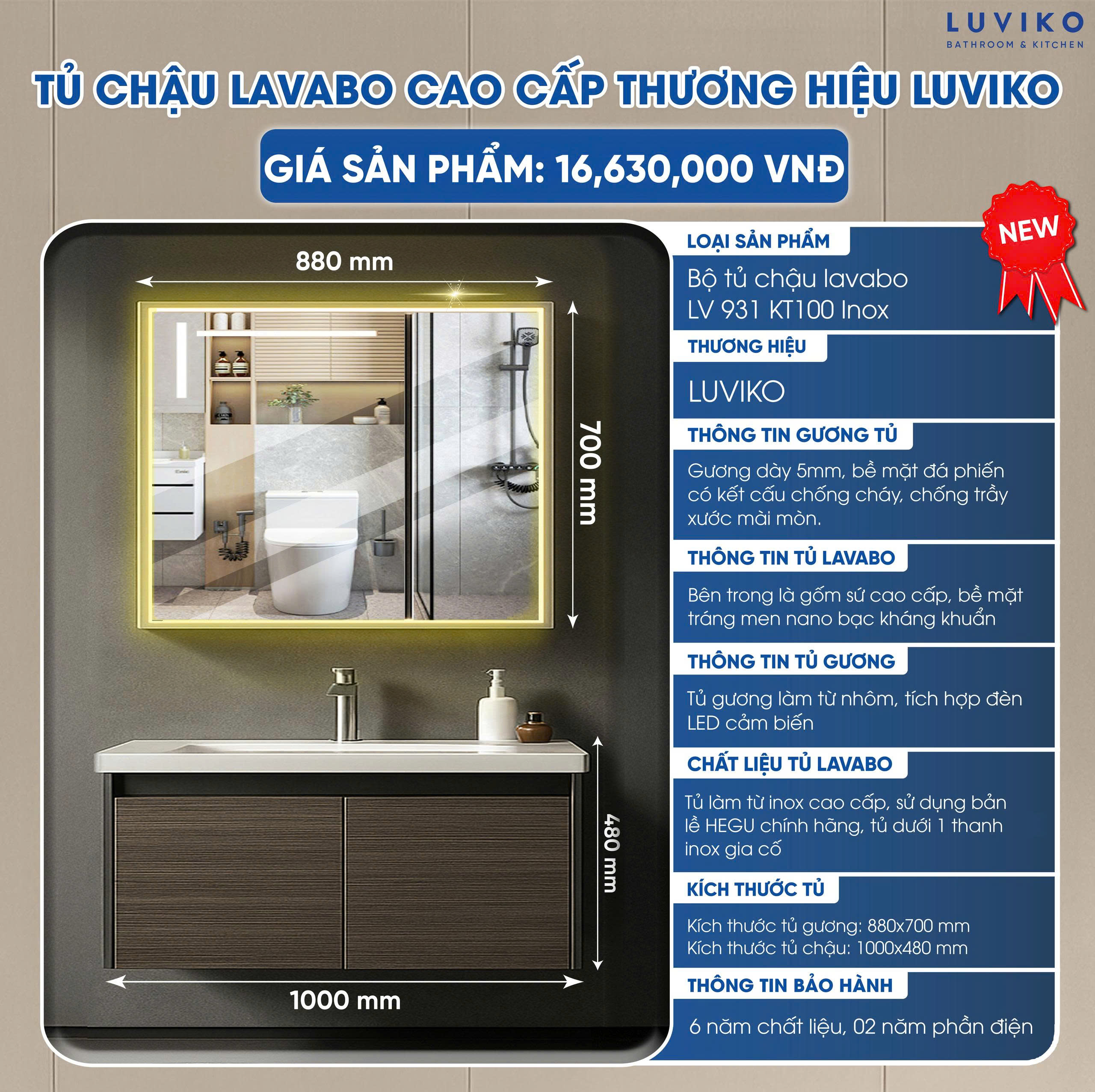 TỦ CHẬU LAVABO LUVIKO LV 931KT100 INOX